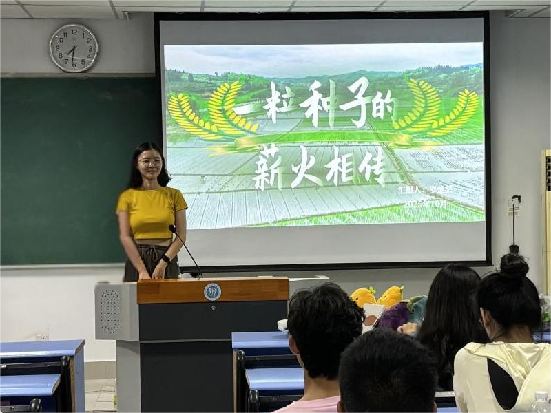 宣讲会上,她以《习近平与大学生朋友们》(第二卷)为核心要义,结合“薪火”宣讲团特色主题《一粒种子的薪火相传》,讲述了谢华安院士为培育出优质高产“汕优63”,在海南试验田与高温蚊虫相伴二十余载的艰辛历程,以及郑家团团队为攻克优质稻种难题,在实验室分析测定上万份样本的默默耕耘的故事,以此鼓励新生以专业学习为基础,把个人理想融入国家发展大局之中。