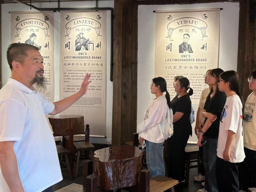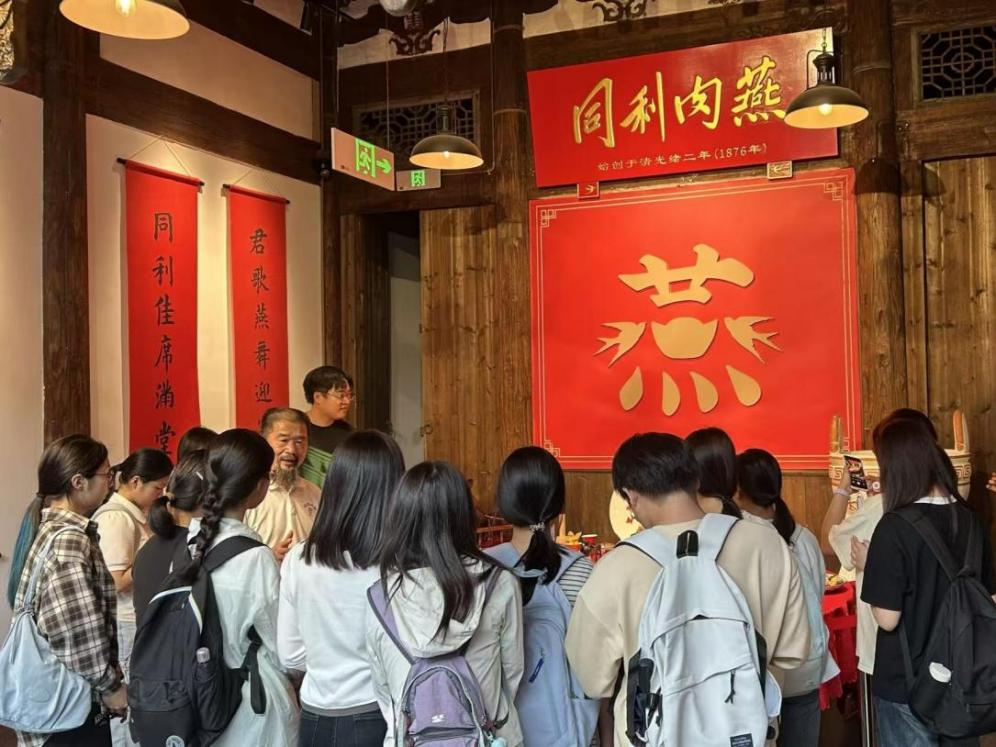 座谈后,师生参观了同利肉燕文化展厅。通过图文史料、历史实物与影像记录,大家深入了解了企业自1876年创立以来的发展轨迹——从街头小铺成长为代表性品牌,并持续推动肉燕文化走向全国乃至国际。工作人员重点介绍了“严守古法技艺+创新市场拓展”的发展理念,令同学们深刻感受到老字号在新时代的持续生命力。